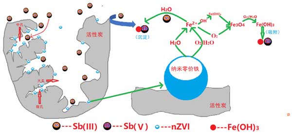 活性炭相對于納米級零價鐵來說吸附銻的效果差很多,但是由于其在多孔結(jié)構(gòu)和機(jī)械強(qiáng)度方面的特性,活性炭可用作支撐材料。活性炭載入納米級零價鐵來進(jìn)行改性處理,可以用于滲透性反應(yīng)屏障,以攔截受污染地下水中的銻或添加到家用過濾器中以去除銻(III)。