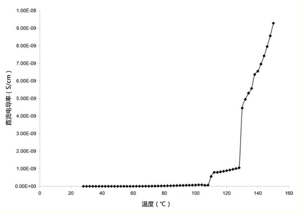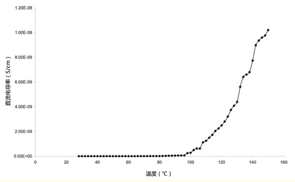 活性炭環(huán)氧梯度復合材料在距外圍不同距離處的密度。這表明與外圍距離的增加會降低復合材料的密度。這是由于活性炭含量的減少。圖1顯示了活性炭粉末填充環(huán)氧樹脂樣品1的直流電導率隨溫度的變化。在該圖中,直流電導率在108℃時增加,然后在112℃時變得恒定,直到128℃,然后突然增加直流電導率在128℃后升高,最高可達150℃。