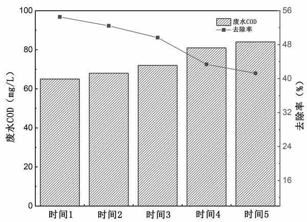 為了評(píng)估活性炭的可重復(fù)使用性,對(duì)活性炭進(jìn)行了吸附-解吸實(shí)驗(yàn)。經(jīng)過四個(gè)吸附-解吸循環(huán)后,活性炭吸附對(duì)焦化廢水中COD的吸附效率僅降低了約10%(圖3),表明活性炭具有良好的可重復(fù)使用性。此外,使用NaOH作為再生劑的方法具有成本效益高的優(yōu)點(diǎn)?傊,這些表明本研究中生產(chǎn)的活性炭在實(shí)際廢水處理中具有巨大的應(yīng)用潛力。