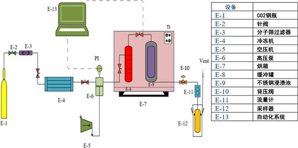 首先,來自儲罐的CO2通過標(biāo)稱尺寸為1µ的過濾器,以避免任何雜質(zhì)進(jìn)入工藝路徑。然后,CO2被引導(dǎo)至冰箱單元,其溫度降至-10℃和60bar。液化CO2使用往復(fù)泵加壓,并轉(zhuǎn)化為殼管式配置的調(diào)壓鼓。在這個(gè)鼓中,流體溫度被設(shè)置為適當(dāng)?shù)臏囟纫赃_(dá)到超臨界流體條件。該鼓的設(shè)計(jì)旨在減少波動(dòng),熱交換通過使用溫度精度設(shè)置為1K的1000W元件循環(huán)水進(jìn)行。壓力表安裝在調(diào)壓鼓的輸出端,以顯示出口流體壓力。之后,液體被引導(dǎo)到裝有10克活性炭和玻璃珠的萃取池。在提取單元的輸入和輸出處安裝了兩個(gè)孔隙率為1微米的過濾器,以防止顆粒逸出。細(xì)胞中玻璃珠的存在使CO2均勻分布在提取單元內(nèi)。在用SC-CO2加載萃取池后,將萃取池設(shè)置在適當(dāng)?shù)臏囟群蛪毫ο录s45分鐘。在靜態(tài)階段之后,動(dòng)態(tài)階段從打開采樣閥開始。為了防止閥門凍結(jié),它被包裹在加熱元件中。在動(dòng)態(tài)時(shí)間內(nèi),使用冰柜將樣品采集溫度保持在0℃以下。每個(gè)實(shí)驗(yàn)一式三份進(jìn)行,圖1顯示了超臨界流體裝置的詳細(xì)信息,通過將每個(gè)初始活性炭的溶質(zhì)重量除以計(jì)算超臨界回收率。