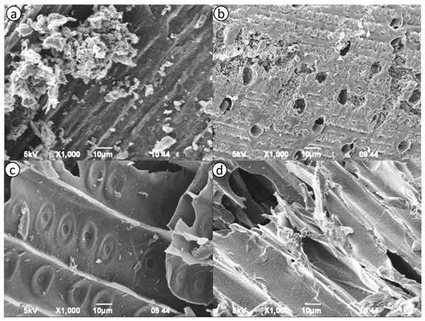 相比之下,圖1c的表面更加均勻,可見孔隙更少,結(jié)構(gòu)破壞的跡象也更少。圓形圖案和光滑區(qū)域表明活化作用有限,與較低的微孔和中孔體積相關(guān)。這些觀察結(jié)果與BET分析結(jié)果一致,證實(shí)了活性炭中存在大孔、中孔和微孔。SEM分析強(qiáng)調(diào)了活化方法對(duì)來自不同生物質(zhì)來源的活性炭的形態(tài)特征的顯著影響。