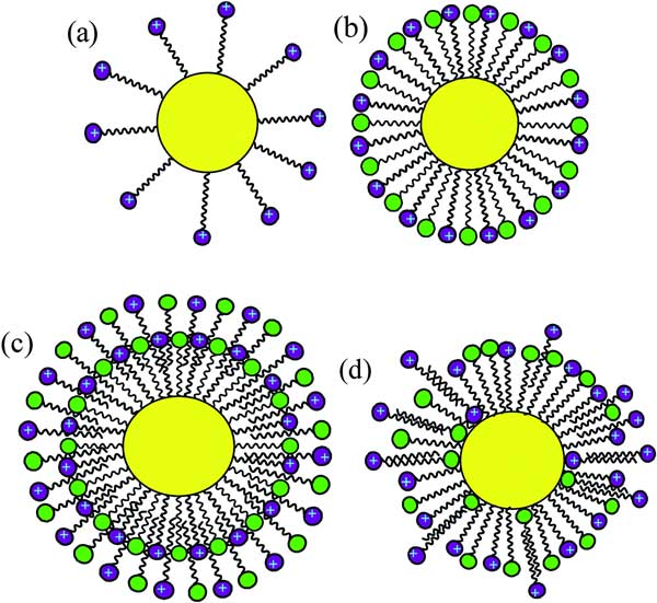 所提出的圖2c中的吸附模式描述了活性炭位點(diǎn)與吐溫80和HDTMA的混合溶液在接近臨界膠束濃度下的相互作用。在圖2c中,陽(yáng)離子和非離子表面活性劑的疏水鏈與活性炭相互作用疏水相互作用,以及吸附狀態(tài)下表面活性劑之間的鏈-鏈側(cè)向相互作用。在高濃度下,表面變得飽和,因此發(fā)生了粘膠形成的發(fā)生。過(guò)量的陽(yáng)離子表面活性劑在吸附狀態(tài)下開(kāi)始滲透單層表面活性劑。事實(shí)上,活性炭具有吸附非極性和極性化合物的雙重性質(zhì),因此吸附機(jī)制導(dǎo)致表面上表面活性劑的取向不同。疏水尾部和親水頭部都可以通過(guò)疏水相互作用(顯性)或分散力與活性炭相互作用。在圖2d中根據(jù)它們相互作用的活性炭位點(diǎn),HDTMA和吐溫80分子可以采取不同的取向。第二層的形成可能源于具有相反取向的表面活性劑之間的疏水相互作用,或者滲透到單層中以形成混合構(gòu)象。