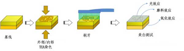 圖1:作為其美白技術(shù)的函數(shù),樣品的染色方案和所測(cè)試的不同美白牙膏的可能的美白效果。