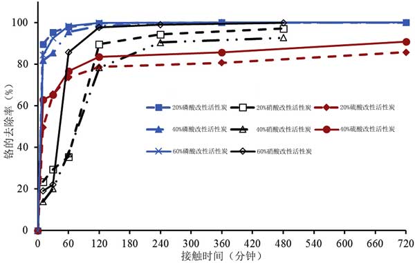 使用活性炭吸附劑處理環(huán)境中的污染物是現(xiàn)在普遍的處理方法,主要是因為活性炭具有各種具有不同表面特征的形式。通過操縱活性炭的物理和化學(xué)表面特征(例如表面積,孔徑,孔體積和官能團)來實現(xiàn)不同的表面性質(zhì)。為了用于從水溶液中吸附金屬離子,所制備的碳的雖然物理結(jié)構(gòu)很好了但是化學(xué)性質(zhì)不是很大,需要重新改性。有時在活性炭上進行化學(xué)再活化或二次處理方法以進一步操縱表面性質(zhì)以改善其去除期間污染物的選擇性和吸附效率。因此,在本期我們研究各種濃度的無機酸比如硫酸、磷酸或硝酸為活性炭改性中的活化劑,測試那種活化劑能增強活性炭對鉻去除的效果。