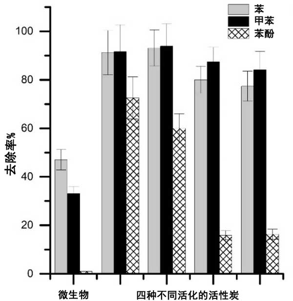 圖2:芳香族烴脫除通過用氫氧化鉀與三聚氰胺官能化的化學(xué)活化制備的活性炭,負(fù)載微生物的活性炭材料。