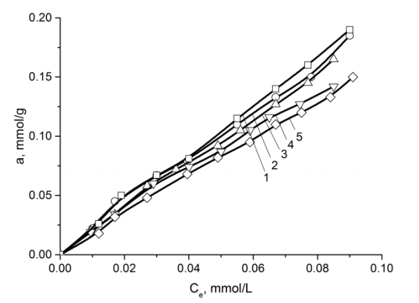 即使在相對較低的平衡濃度下,活性炭果殼1上水溶液中鍶離子的吸附等溫線也有兩個拐點。隨著溫度升高,吸附值降低,表明吸附過程是放熱的。鍶離子在活性炭1和2上的標準吸附熱值不同。活性炭1的Q 0值高于樣品2的Q 0值,分別等于8.6 kJ / mol和6.8 kJ / mol。活性炭1上鍶離子的吸附標準熵變的絕對值很小,這與鍶離子在吸附劑中的高遷移率有關,因此,吸附可能是非定位的。