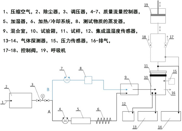 圖2:突破試驗(yàn)臺(tái)圖,元件15–19僅在脈動(dòng)流測(cè)試期間使用。