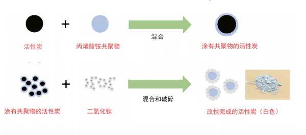 活性炭通常用作出色的多功能吸附劑;钚蕴康亩嗫妆砻婵赏ㄟ^將極薄的化合物層粘附到較大的碳表面積上來使各種化學(xué)物質(zhì)失活。它們通常用于吸附去除飲用水和工業(yè)用水中的顏色,氣味,味道和不良有機(jī)和無機(jī)污染物。此外,活性炭常用于許多化學(xué),食品和其他物質(zhì)的純化。因此,基于我們的發(fā)現(xiàn),活性炭對(duì)各種產(chǎn)生體味的化合物表現(xiàn)出高吸附能力,改性后更強(qiáng)。將平均直徑為9.4或40.5μm的活性炭粉與丙烯酸銨共聚物溶液在超純水中完全混合。將平均直徑為0.25μm的二氧化鈦粉末以5-20g的不同濃度添加到混合物中,以制造相應(yīng)的改性活性炭。在115℃下將樣品干燥2小時(shí)后,使用破碎機(jī)通過均勻研磨獲得除異味活性炭(圖1)。并且比較了活性炭與除異味活性炭中所含活性炭的吸附能力。