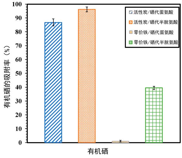 圖2:在25°C下使用7g/L的活性炭和pH7.0的納米零價鐵去除有機硒3小時的比較。