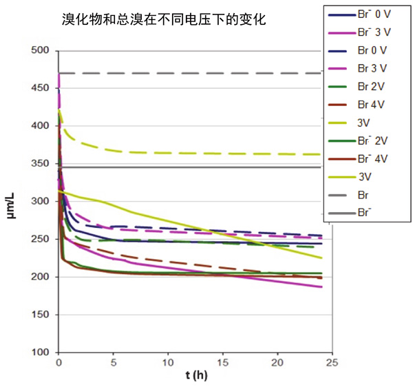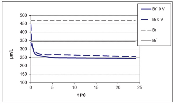 圖2:在沒(méi)有電壓的情況下溴化物和總溴濃度的變化。